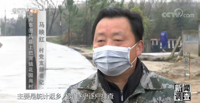 村支书告诉央视记者,1月24日,村委会接到乡镇下发的通知,要求对全村的人口进行全面排查。经排查发现,全村有390人在春节前从外地返乡,其中178人来自武汉,最晚的在1月24日上午到家。对于从武汉返乡的村民,村委会按照乡镇上的要求,给每户发放一支体温枪,居家隔离,每天监测体温。