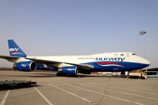 2月21日,阿塞拜疆丝绸之路西部航空公司的货机停靠在郑州新郑国际机场。新华社发