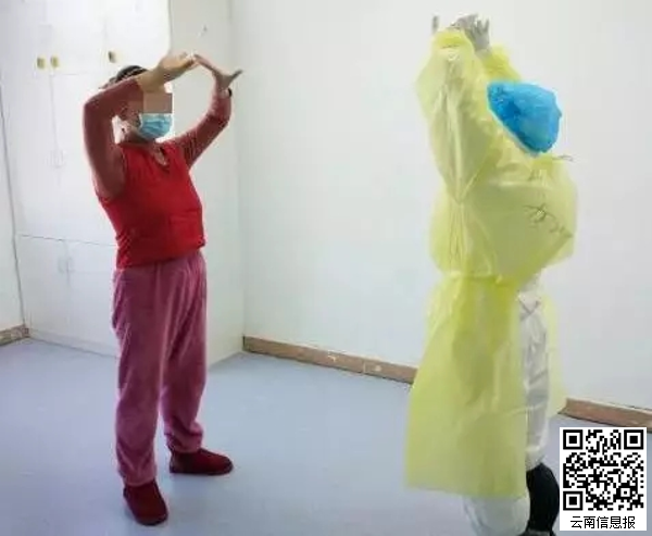 面对单独隔离的孤独,心理护理是必不可少的部分,针对这一问题,云南省肿瘤医院医疗队员想到了很多办法,尽其所能,除了生活上的细心照护,治疗时的耐心讲解指导,以及对患者心理的护理都十分重要。在治疗一位只有3岁但单独住院隔离的小患者时,我院医疗队队员帅丽发现小患者与家人联系的手机没电后,将自己的充电宝送给了他,希望小患者能够在没有爸爸妈妈的情况下安然度过这段日子。为了病人能在治疗期间多活动,胥丹老师教患者进行八段锦锻炼,由于处于疑似病区,不能召集太多人,只能一个病房一个病房的去教,一圈下来,满身大汗,但她却说这是她打过最开心、最有力量的八段锦。“累,真心累!但一定会坚持下去!患者的一个手势、一句温暖的话语就是强心剂!”“我们来就是为了他们早日康复!”胥丹说。