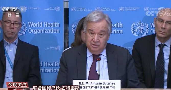 2月24日,联合国秘书长古特雷斯到位于日内瓦的世界卫生组织总部了解新冠肺炎疫情情况。他呼吁各国尽全力应对疫情,并表达了对中国人民的感谢之情。