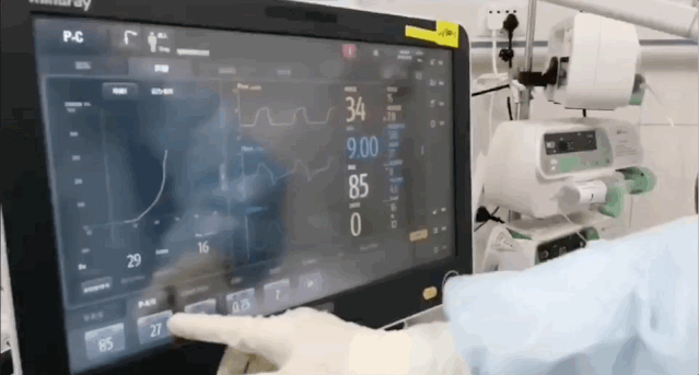 对于呼吸机,呼吸治疗师们当然不止会安装,更要会用。这个“会用”,也绝不只是打开开关那么简单。在湖北荆门市第一人民医院,来自浙江大学附属邵逸夫医院的呼吸治疗师徐培峰面前,呼吸机显示屏上有跳动的波形和数值,他要根据这些信息,调节呼吸机的运行参数,跟患者的肺形成良性互动。