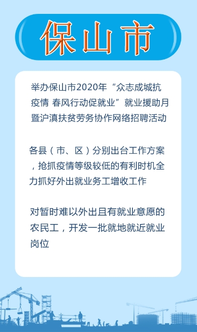 云南省人力资源和社会保障厅下发了《云南省人力资源和社会保障厅办公室关于新型冠状病毒感染的肺炎疫情防控期间优化加强线上公共就业服务工作的通知》《关于疫情防控期间稳就业工作行动方案》等一系列文件,对外出务工人员给出了一系列政策加油包,其中包括: