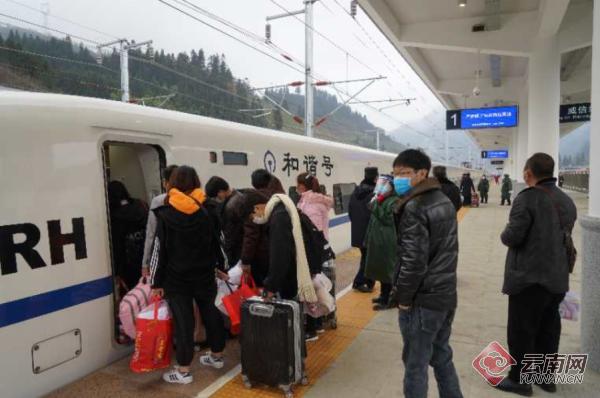 2月25日清晨,春光明媚。宣威市1135名外出务工人员分3批从曲靖北站搭上曲靖号高铁直达杭州广州,走上务工增收致富的新征程。“去年就在广州干活,现在政府组织客车和高铁免费帮助我们从家门口送到企业,不仅方便了大家,还为我们节约800元的路费。”今年56岁的宣威市双河乡村民杨美花说到。