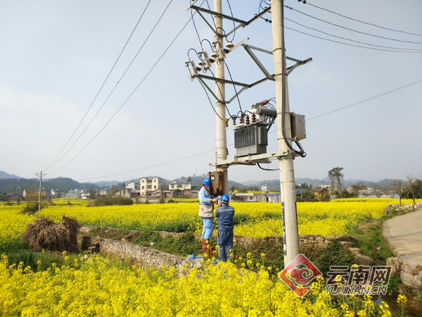 为了确保春耕用电,当发生故障缺陷时,云南电网公司工作人员都是第一时间赶到现场处理。2月20日,曲靖罗平供电局配电管理所配电抢修三班工作人员对保障油菜花种植生产的10千伏金鸡线开展巡视,及时发现并消除缺陷1项、隐患7项,确保油菜花种植的安全用电。2月25日,经过昆明禄劝供电局配电运维班、云龙供电所工作人员及施工人员的排查抢修,顺利消除了禄劝斗乌村委会三家村变压器、电缆由于过载导致的故障,及时保证了当地疫情防控及春耕生产用电。(通讯员 王宇 祁彦君 范楠 贺璇 潘也 缪祥柳 阮松萍 李媛媛 龙振江 皮忠贵 胡珍 王和星 魏巍)