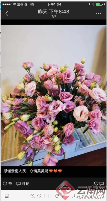 疫情发生以来,各种渠道的捐赠物资陆续送到咸宁。红河、大理、通海、怒江、文山……物资以爱的名义往咸宁驰援。这几天,各种蔬菜、水果、白条鸡、鸡蛋和鲜切花等爱心物资通过不同渠道陆续送到咸宁市民手中。一时间,咸宁人的朋友圈被来自云南的爱心农产品刷屏。市民说的最多的是:感谢云南!