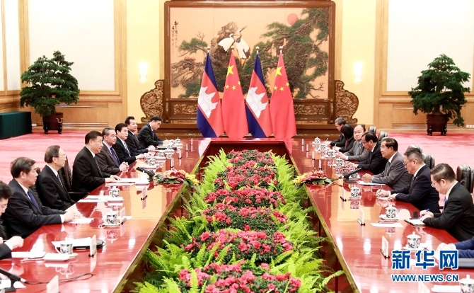 2月5日,柬埔寨首相洪森到访北京。习近平主席在人民大会堂东大厅同他会见。