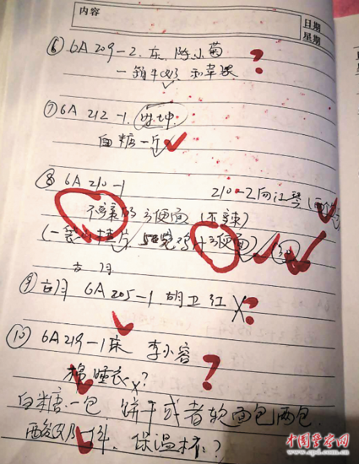 汤三立写好患者购物单后,凡是送到的打钩,没送到的打问号,有特殊要求的画圈。周剑波 摄
