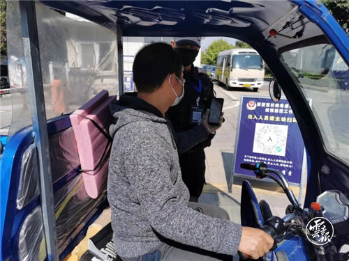 “先生,请您扫码并测体温后再进入农贸市场,第一次扫码需要根据提示填写个人信息,您所填写的内容仅用作数据分析,预警高风险人员,不会触及个人隐私,请放心使用。”
