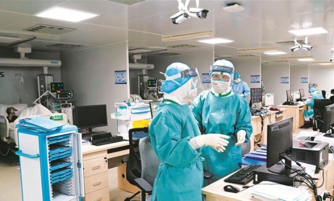 时间:2月16日上午8时。地点:火神山医院感染一科一病区。