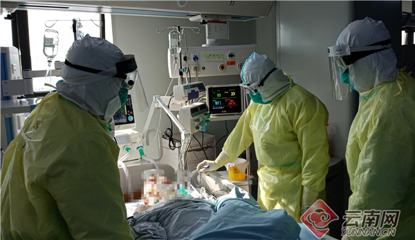 在咸宁市中心医院重症监护病房,云南医疗队队员全力以赴对患者进行救治和护理。重点围绕危重症患者的救治工作开展,云南医疗队按照“一人一策”的工作要求,通过开展集中统一管理和救治,强化“早诊早治”,精准施治,提高治愈率,降低病亡率。