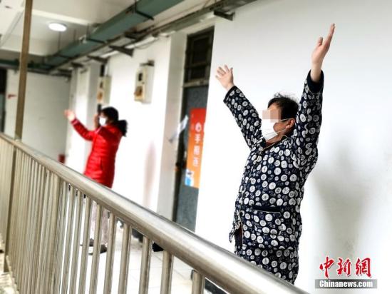 中新社武汉2月29日电 记者杨程晨 29日中午,作为康复期患者隔离点的武汉软件工程职业学院5栋宿舍楼响起了音乐,人们戴上口罩走出房门,站在“口”字型走廊上练起八段锦和太极拳。