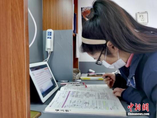 治愈出院患者在隔离点上网课。 安源 摄