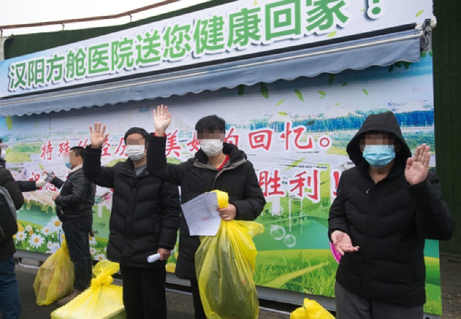 2月21日,汉阳方舱医院首批53名治愈患者集体出院。新华社记者 肖艺九 摄