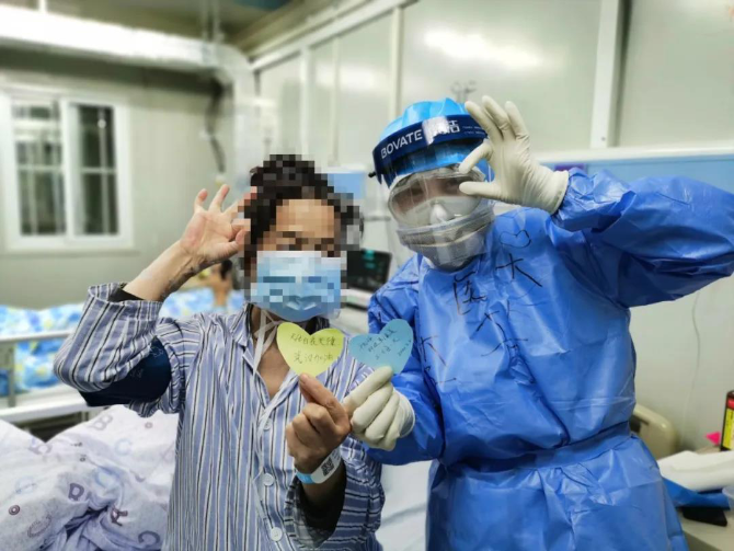 “感谢医生和护士们,感谢你们负重前行,为了我们大家,暂时离开你们的小家。你们也一定要平安回家,因为家里人也在等着你们!我也曾经恐惧过,但是阴霾都过去了,谢谢你们!”