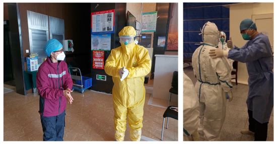 “在高强度的工作之后,许多一线的战友们无法仔细精准地按照院感要求去脱防护用品。例如,有的人忘记要先脱什么;有的人忘记脱口罩不能接触口罩外面;有的人摘口罩、脱防护服时太快……这个时候就需要我们来提醒、帮助他们。”郑晓莉说,“有一次,一位医生第一次出舱十分紧张,手一直发抖,甚至忘了怎么脱防护用品。我安慰她说,不要紧张,慢慢来,我会一步一步提醒你怎么完成。我相信第二次她就不会这样紧张,能够淡定出舱。”