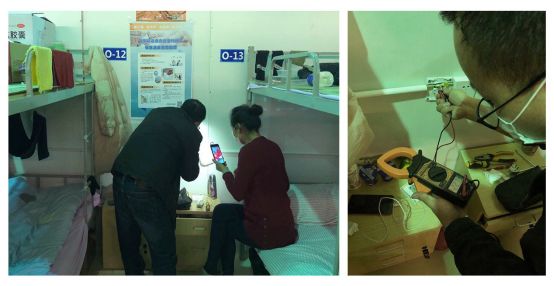 潘凯在武汉沌口方舱医院里维修电路