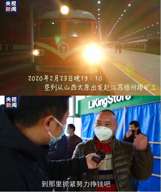 2月23日晚,山西朔州组织的复工专列,把606名煤矿工人从江苏徐州接回朔州。这趟专列往返2000多公里,一路上有家人的牵挂,有疫情防控的压力,更有对2020年春天满满的希冀和期待。