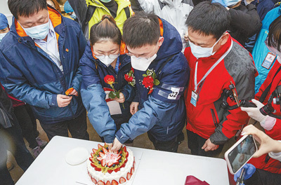雷神山医院院方得知这对“95后”新人的情况后,为他们俩举行了这场“战地婚礼”。(人民日报 姜泓冰 张赫 叶佳琪 莫佳瑜)
