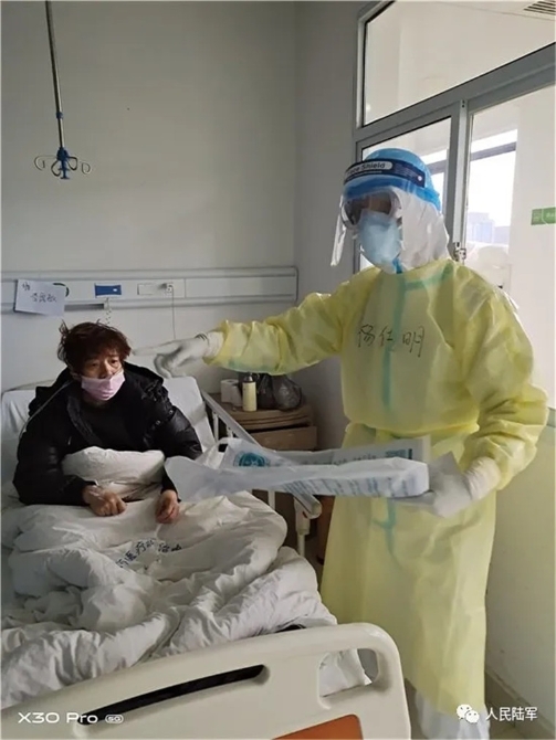 一个多月来,这位“军医中的武汉伢子”,每天都会出现在“红区”查房、问诊。防护服隔离病毒不隔离爱,杨仕明把对家乡父老的爱,化作治病救人的无穷动力。患者看在眼里,记在心上。