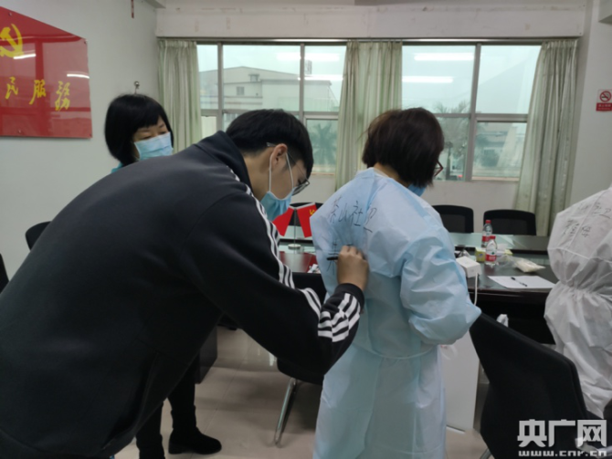 余昆哲协助社区随访工作人员穿防护服