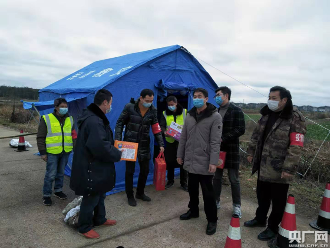 杨洋(右二)为家乡捐赠防疫物资