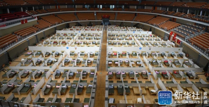 这是武汉体育中心方舱医院(2月12日摄)。新华社记者 程敏 摄