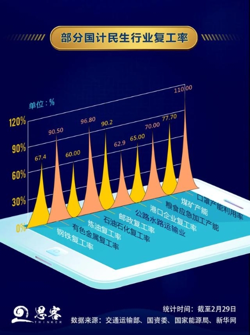 石油石化、通讯、电力、交通运输等行业的复工率已经超过95%,有的已经达到100%。央企接近“满分”的复工率不仅能为战“疫”和减轻经济下行压力提供强有力支撑,还能带动上下游产业链,为上下游环节的中小企业提供更多发展机会。