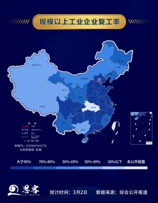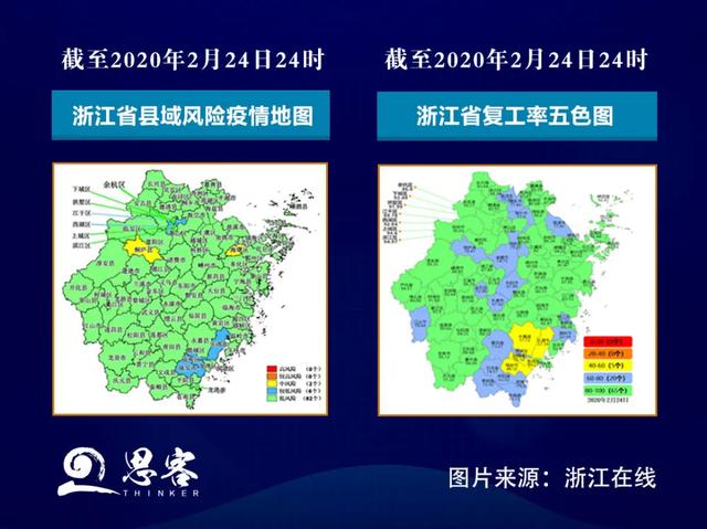 浙江通过绘制规上企业复工率五色图与疫情五色图的形式“挂图作战”,推动复工图与疫情图相匹配,这样的统筹规划让疫情防控和复工复产更科学、更精准。