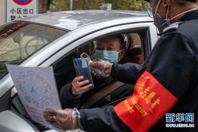2月15日,在云南省昆明市怡园小区门口,市民扫码进入小区。 新华社记者 胡超 摄