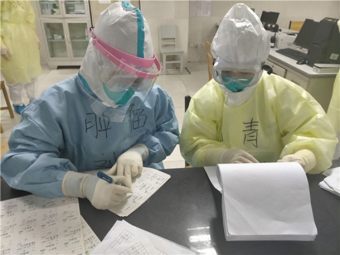 “每次穿好防护服进入隔离区前,我和同伴都会相互检查和对照镜子,确保没有包裹不严密的地方。”付正芳说,经过这么多首次体验,说不紧张是假的,但更多的是与日俱增的责任感与使命感。