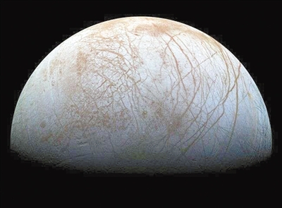 “伽利略”探测器提供的数据表明,木卫二冰冷的外壳下存在一个巨大的海洋。图片来源:美国太空网