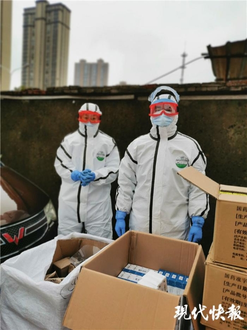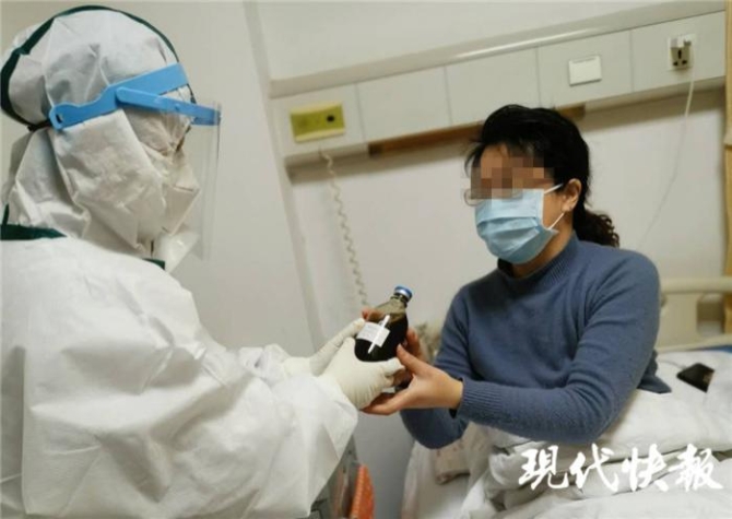△湖北省中医院肺五科的医护人员为患者送医院自制中药汤剂