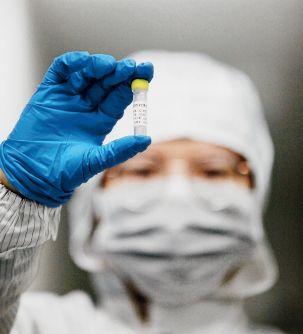 新冠肺炎疫情发生以来,位于江苏扬州高新区生物科技园内的扬州邗江生物医药创新实验中心技术人员快速复工,加紧生产新冠肺炎的检测试剂盒,助力抗击新冠肺炎疫情一线工作。图为2020年2月17日,扬州邗江生物医药创新实验中心的工作人员展示新冠肺炎病毒检测试剂。 人民图片 孟德龙/摄