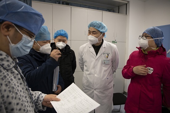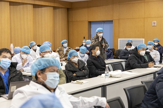 2月28日,早上大换班各病区负责人对当日情况进行讨论。