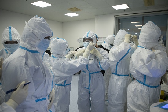 2月27日,同济光谷医院E1二楼病区,广州中山三院队员准备进仓。