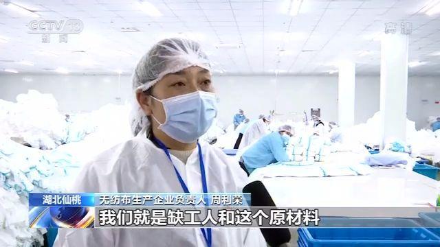 湖北省仙桃市盛产无纺布,当地积极组织企业和人员复工复产,生产医用防护物资。