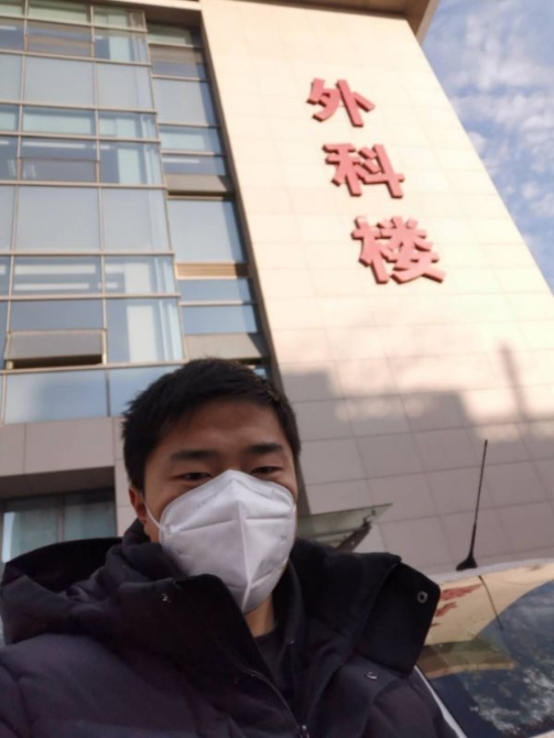 接送医护到医院的周晨给自己自拍了一张。本人供图