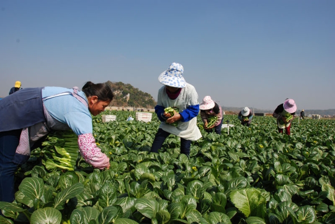 春雷响,万物长,农家无闲春耕忙。在者腊乡夸溪村云南中康食品有限公司蔬菜种植基地,58岁的权文英及村中的一批留守妇女正在地里忙碌着。权文英在基地务工已经有三四年,之前留守在家没有什么收入,现在每天务工可以获得七八十元的工资,家里还流转了2亩多的土地,新房子也盖起来了。这个朴实的农村妇女羞赧的笑容里透着喜悦。