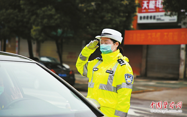 石首市公安局交警大队女子抗疫突击队民警在路面执勤。