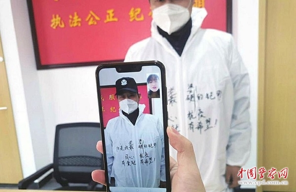 民警洪慧鹏写在防护服的话是他送给妻子的“礼物”。 (武汉市公安局供图)