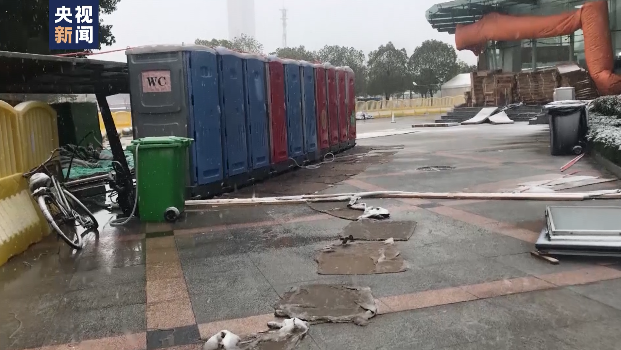 江岸方舱医院的户外设置了100个移动厕所,每天都有专门的环卫工人来清洁和消杀。