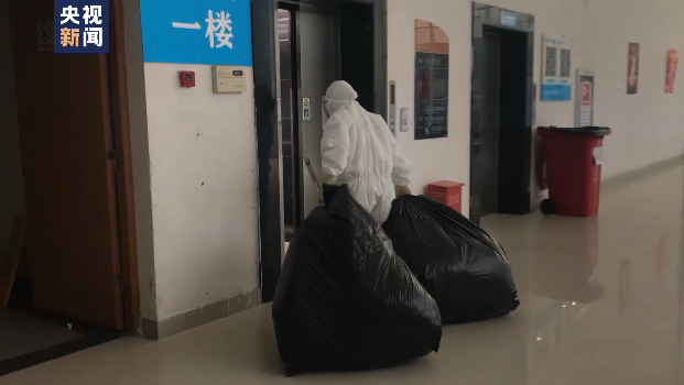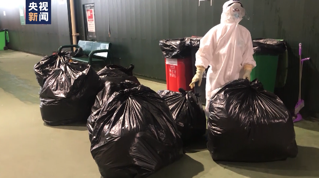 原则上,在方舱内使用过的物品都不能带出舱。随着方舱内治愈出院的人数突破四百例,每天需要处理的生活垃圾也随之增加,这给垃圾清运带来不小的压力。每清理一次垃圾,他们都要走很远的路。
