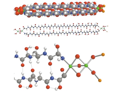 科学家在陨石中发现的血石蛋白分子的模型。图片来源:物理学家组织网