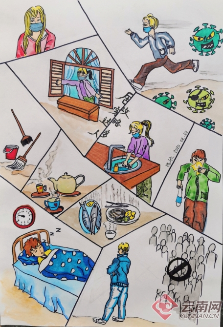 “我校师生学子们还积极创作了书画作品声援‘疫’线,例如,辅导员陈欣老师就创作了一系列宣传画作,用画笔记录这场无声的战‘疫’,为大家加油鼓劲。”云南林职院相关负责人介绍,抗疫期间,学校制定了疫情管控方案,建立了学生辅导员学院学校四级报告制度,引进微信手机端小程序开展“一日一报”动态信息收集,及时掌握学生动态。师生们认真贯彻落实防疫阻击战有关要求,在各自的家乡书写着属于自己的抗疫战歌。(记者高艺萌)