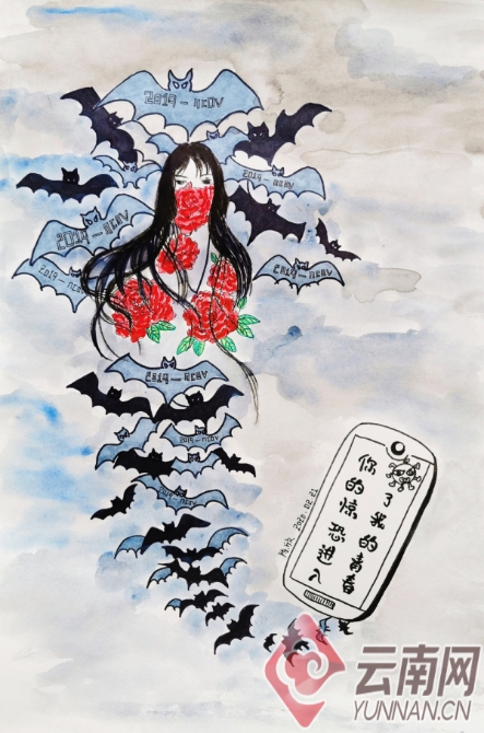林职院教师绘画原创作品 当青春撞上新型冠状病毒 供图