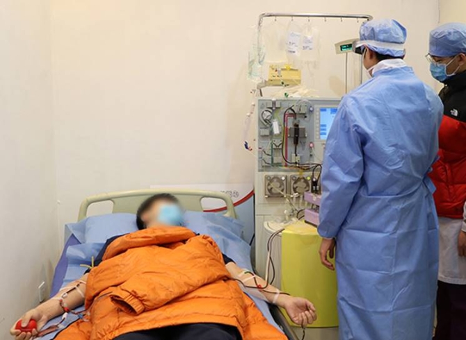 新华社北京3月8日电 陈爱平 “能够用我的血帮助治疗其他患者,报答舍命救治我的医护人员,我非常开心。”近日,在解放军总医院第五医学中心输血科,看着自己的血液流入血浆分离设备中,曾经在这里接受治疗新冠肺炎的两名康复患者表达了同样的心情。
