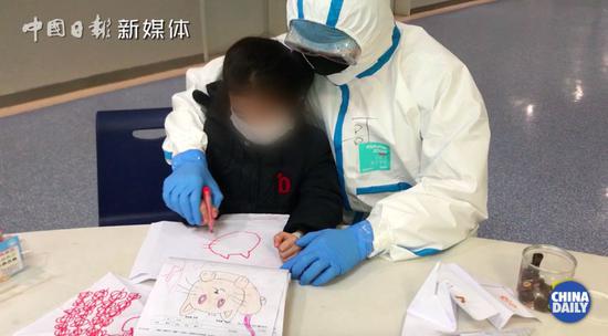他和同事们找来医院多余的纸张,还有彩色铅笔和蜡笔,让乐乐在上面绘画涂鸦,特地为她装订成册。