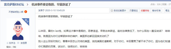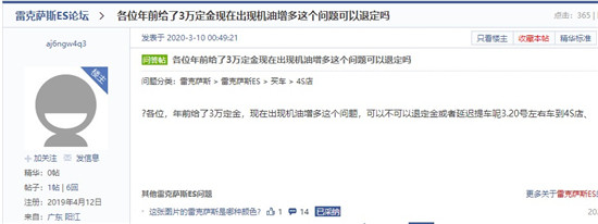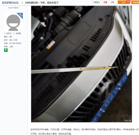 有业内人士表示,无论澄清、亦或是承认并解决问题,面对激增的投诉,雷克萨斯都需要及时发出官方“声音”。“拖延”只会激起更多不知情消费者的怀疑情绪,论坛中就有消费者表示,“年前已经交付3万元定金,但由于机油增多问题,现在考虑延迟提车甚至退定金。”