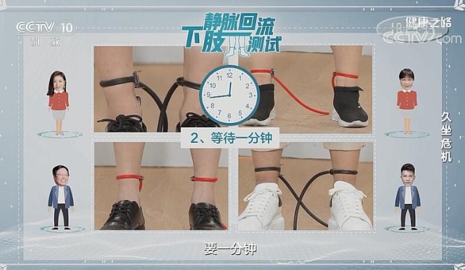用止血带或橡皮筋在足踝区域勒紧,一分钟后释放止血带,通过勒痕的深度,可以判断静脉回流是否通畅。