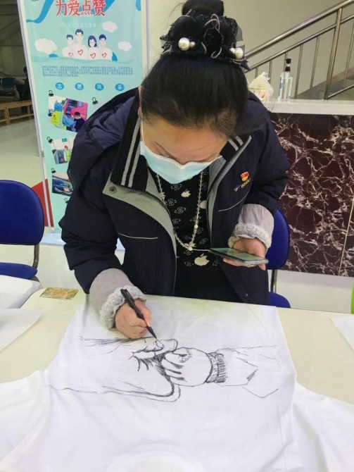 仅仅一天多的时间就完成了620件文化衫的涂鸦工作。其中有250件由钢花小学、钢城四小的小学生创作完成,另外370件出自社区志愿者、在校大学生和爱心群众之手。